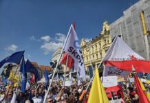 U organizaciji tri sindikalne središnjice SSSH, NHS i MHS te SUH u subotu je s početkom u podne održan prosvjed "Hrvatska zajedno za veće...