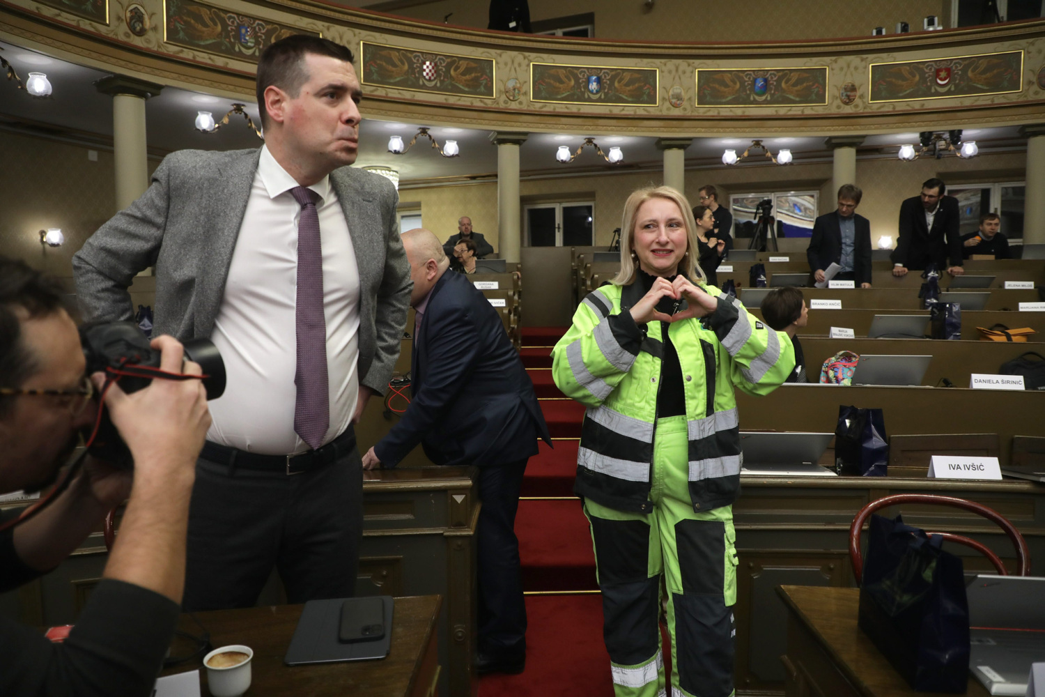 “Ti ljudi rade u nemogućim uvjetima”, pojasnila je Rusak zašto se odlučila pojaviti u odori radnika Zrinjevca, napominjući da im želi dati podršku. Opisala je i kako su u Zrinjevcu podnijeli najveći teret nakon nevremena, radnika je malo, a strojevi s kojima rade se kvare.