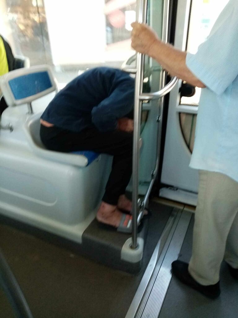 U tramvaju čovjek čvrsto spava s glavom u kutu, u nenormalnom i neudobnom položaju, sav skvrčen, u natikačama, crvenih nogu i stopala, očito s nekom dermatološkom bolešću ili trombozom. Tko zna! Dakle, do kada će se ignorirati ovi ljudi, zar su stvarno nevidljivi”, piše u objavi.