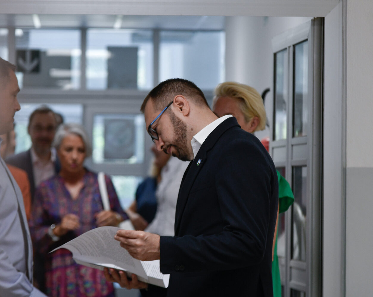 Prije svoje redovne tjedne konferencije za medije, gradonačelnik Tomislav Tomašević je u društvu svojih zamjenika, Danijele Dolenec i Luke Korlaeta, obišao energetski obnovljenu Školsku sportsku dvoranu Peščenica.