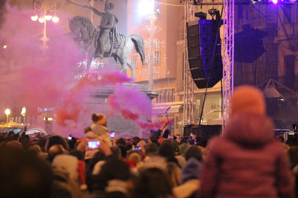 Glavni je trg bio prepun ljudi, a u ponoć je pao vatromet i prve čestitke!