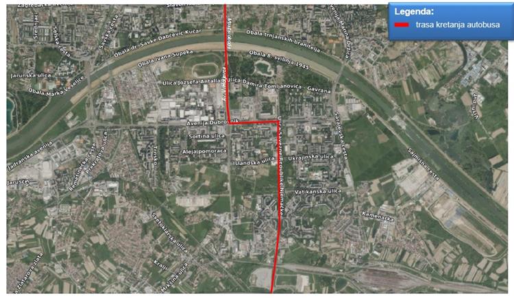 Zračna luka „Franjo Tuđman“ – Fizirova – Zagrebačka – Čvor Buzin – Ulica SR Njemačke – Avenija Dubrovnik – Ulica Hrvatske Bratske zajednice – Ulica grada Vukovara – Savska cesta – Frankopanska – Ilica – Trg bana Josipa Jelačića.