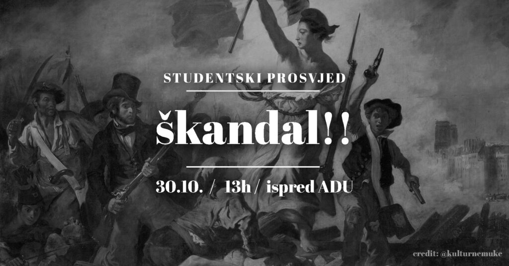 Studenti Akademije dramske umjetnosti najavljuju prosvjed 30.10. u 13 sati ispred glavne zgrade ADU na Trg Republike Hrvatske 5.