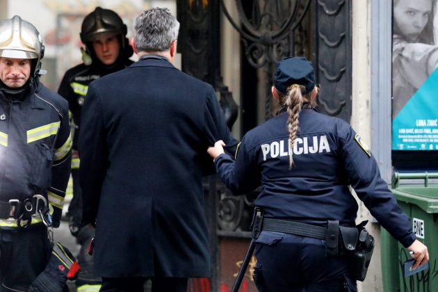 Na nekim fotografijama jasno se vidi da policajka nije dozvolila Pavlu Kaliniću, pročelniku Gradskog ureda za upravljanje u hitnim situacijama Grada Zagreba, ulaz na mjesto požara.