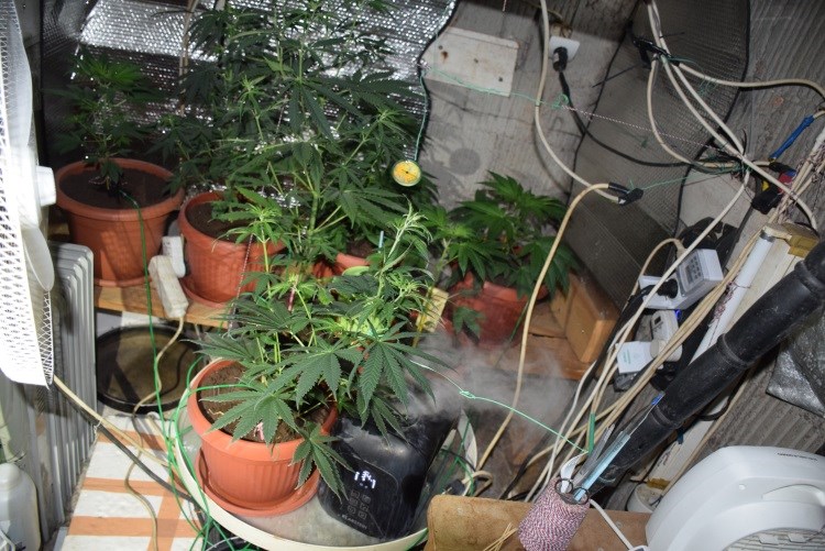 Pretragom kuće policijski službenici su pronašli dva improvizirana laboratorija s umjetno stvorenim uvjetima za uzgoj biljaka u kojima je zasađeno ukupno 56 komada stabljika marihuane, visine cca od 5 do 100 cm, 529 grama marihuane i tri digitalne vage s tragovima droge.