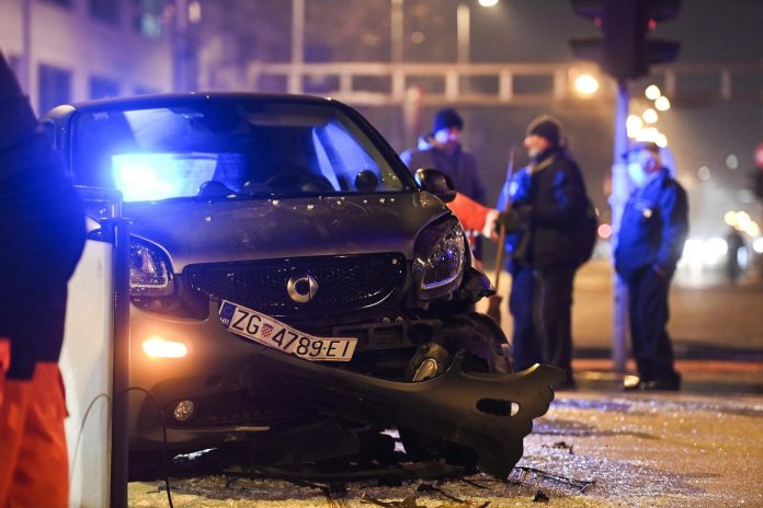 Naime, vozač je izgubio kontrolu nad vozilom i zabio se tramvajsku stanicu.