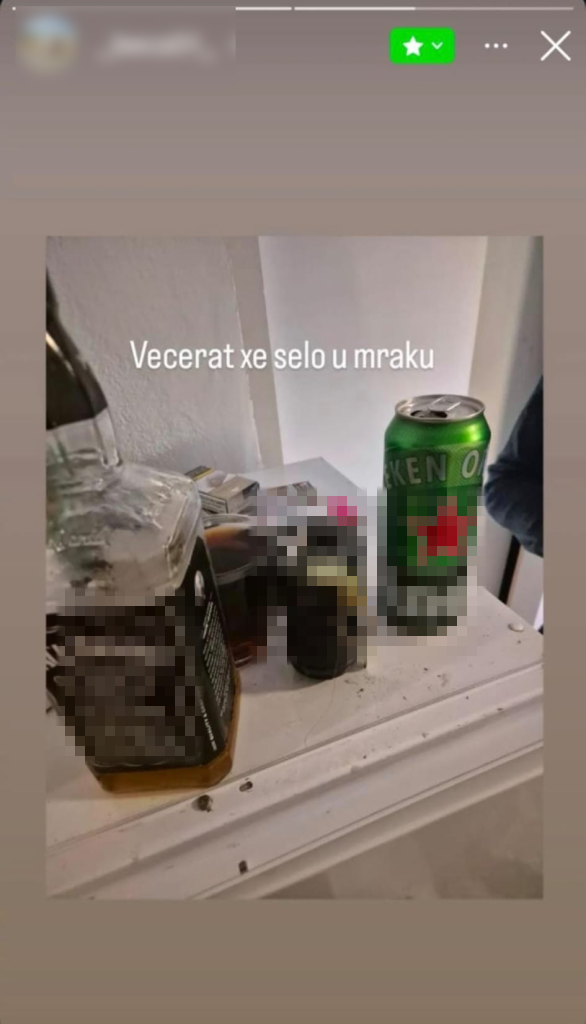 Kako prenosi lokalni kninski portal Feral News, fotografiju je objavila osoba koja se nalazila na zabavi, a na njoj se može vidjeti stol na kojem su alkoholna pića i ručna bomba te opis uz fotografiju koji glasi “Večerat će selo u mraku”.