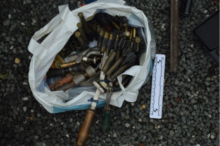 “Pet komada trotilskog metka, dva komada sporogorećeg štapina duljine 4,3 metra, 250 grama nitroceluloznog baruta odnosno puščanog praha koji je tri do pet puta jači od crnoga baruta, 115 komada streljiva raznih kalibara, 16 komada cijevi za puške raznih dužina i kalibara, šest komada raznog školskog streljiva, šest zračnih pušaka raznih marki i modela”.