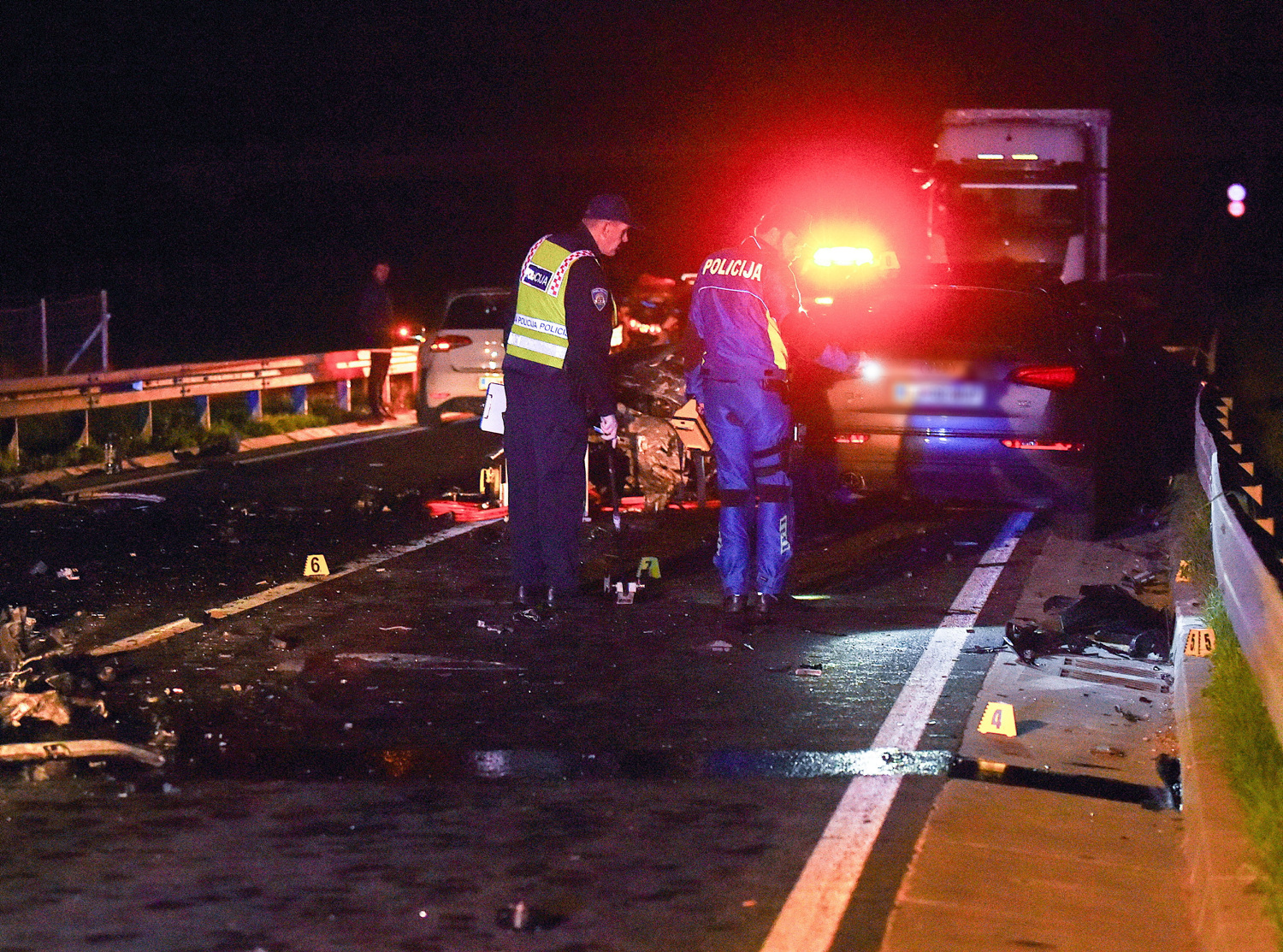 U nesreći su poginuli 42-godišnji slovenski vozač i 40-godišnji bivši reprezentativac koji je bio za volanom. Teško su ozlijeđena još dvojica hrvatskih državljana, 35 i 31 godinu, dok je 27-godišnji putnik iz istog vozila zadobio ozljede opasne po život. Naknadno je pomoć zatražila i 16-godišnja Slovenka, putnica iz vozila austrijskih oznaka.