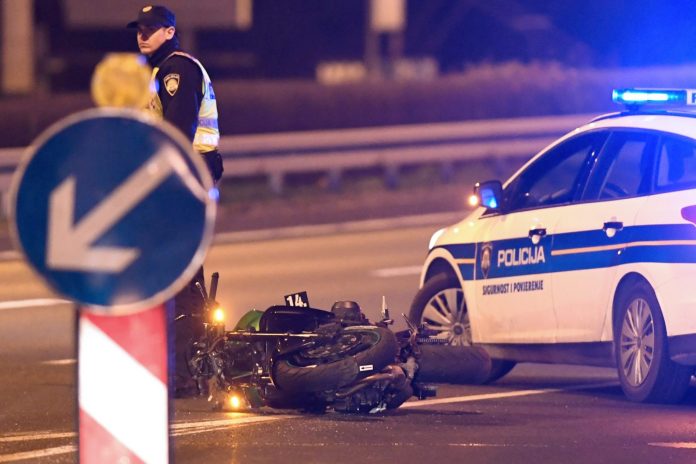 U prometnoj nesreći su vozač i pješaci zadobili lakše tjelesne ozljede, javlja policija, a nakon pada motocikl se nastavio kretati i udario je u službeno policijsko vozilo i oštetio ga.