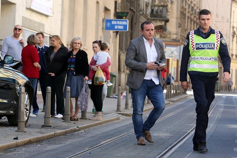Pijani vozač (napuhao 1,87 promila) je u Audiju A6 TDI Ilicom iz smjera trga bježao od policije te izgubio kontrolu nad vozilom. Potom je vozilom pregazio stupiće, srušio semafor pa razvalio stepenicu pečenjare te završio na nogostupu, piše Jutarnji list.