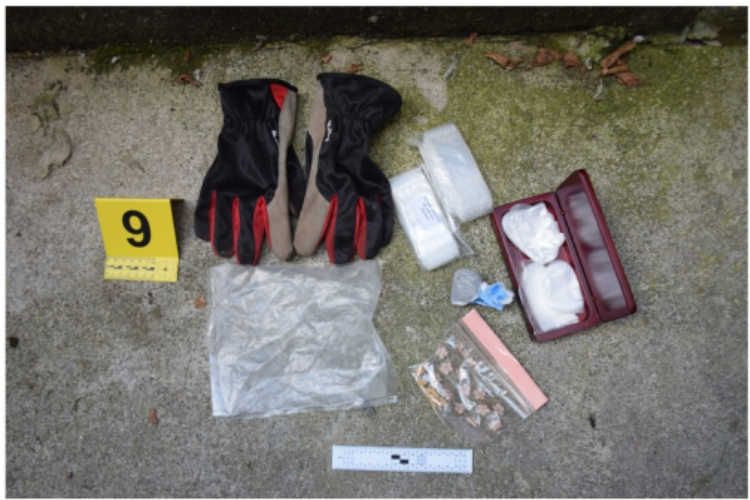 Temeljem naloga Županijskog suda u Zagrebu, 1. rujna je obavljena pretraga podrumske prostorije kojom prilikom je kod prvoosumnjičenog pronađeno 120,1 grama kokaina, 6,3 grama konoplje tipa droga, digitalna vaga za precizno mjerenje težine, pribor za pripremanje i pakiranje droge (gumene rukavice, plastične vrećice, električni mikser, posude i dr.) veće količine provalničkog alata (pajseri različitih dimenzija, više odvijača različitih veličina, tri GPS uređaja), podkapa, 43 komada pištoljskog streljiva call. 9 mm, prerađeni pištolj marke „Sig sauer“, osam mobitela te određeni novčani iznos.