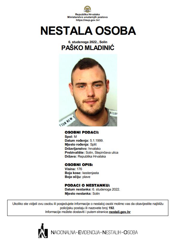 U Solinu je nestao 23-godišnji Paško Mladinić.