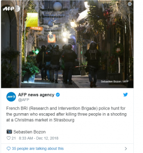 Nos forces de sécurité sont totalement mobilisées pour mettre hors d'état de nuire l'assaillant.#Strasbourg pic.twitter.com/MBEcefKIRD— Christophe Castaner (@CCastaner) December 12, 2018