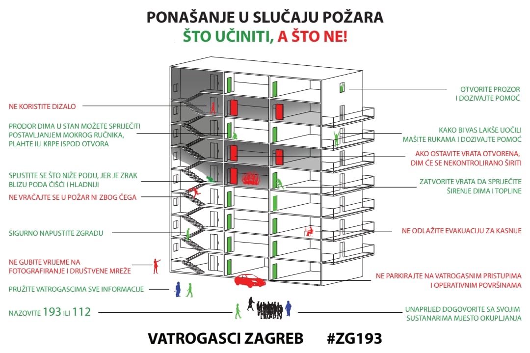 “Ako ostavite vrata otvorena, dim se počinje širiti i tada ugrožavate sve u objektu. U takvim slučajevima, više ne gasimo ‘samo’ požar, primjerice na trećem katu — već istovremeno moramo provoditi i brojna spašavanja, suočavati se s panikom i dodatnim opasnostima, kao što je prikazano na infografici na koju često upozoravamo”, upozorava zapovjednik zagrebačkih vatrogasaca Siniša Jembrih, a čitav popis savjeta vatrogasaca pročitajte u članku dolje.