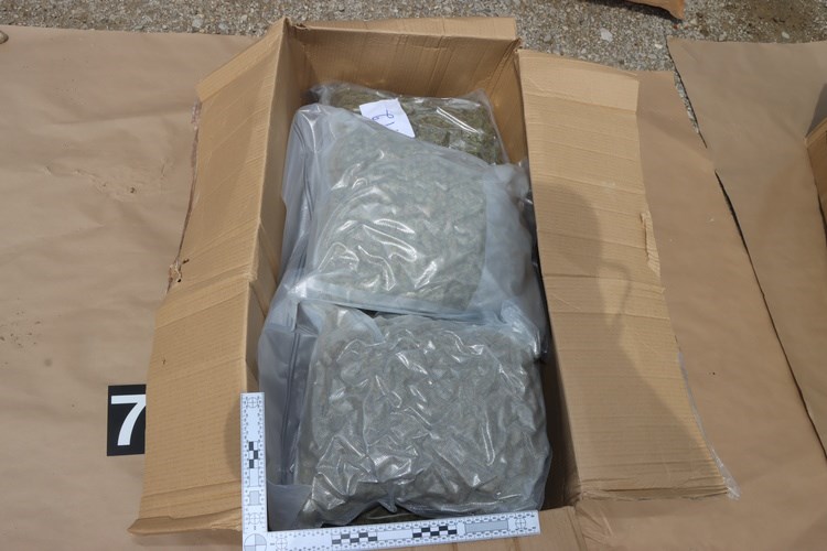Temeljem pribavljenog sudskog naloga policijski su službenici obavili pretragu teretnog i priključnog vozila koje koristi osumnjičeni 53-godišnjak, a kojom prilikom je u priključnom vozilu pronađeno ukupno 37.002 grama konoplje tipa droga pakirane u pet kartonskih kutija odnosno u 36 plastičnih omota.