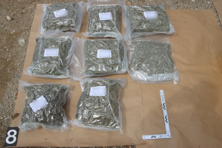 U namjeri su ga zaustavili policijski službenici koji su ga na uhitili, a potom i na mjestu događaja proveli očevid. Tijekom očevida pronađene su i oduzete dvije kartonske kutije ispunjene s ukupno 19.858 grama konoplje tipa droga pakirane u 17 paketa.