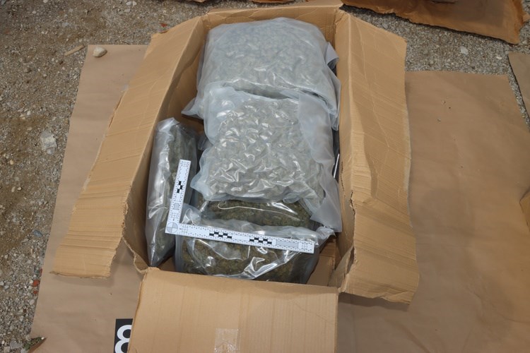 Potom je, sumnja se, dvije kartonske kutije sa 17 paketa ispunjenih s ukupno 19.858 grama konoplje tipa droga predao osumnjičenom 54-godišnjaku koje je isti namjeravao staviti u osobni automobil zagrebačkih registarskih oznaka kojim se isti koristi.