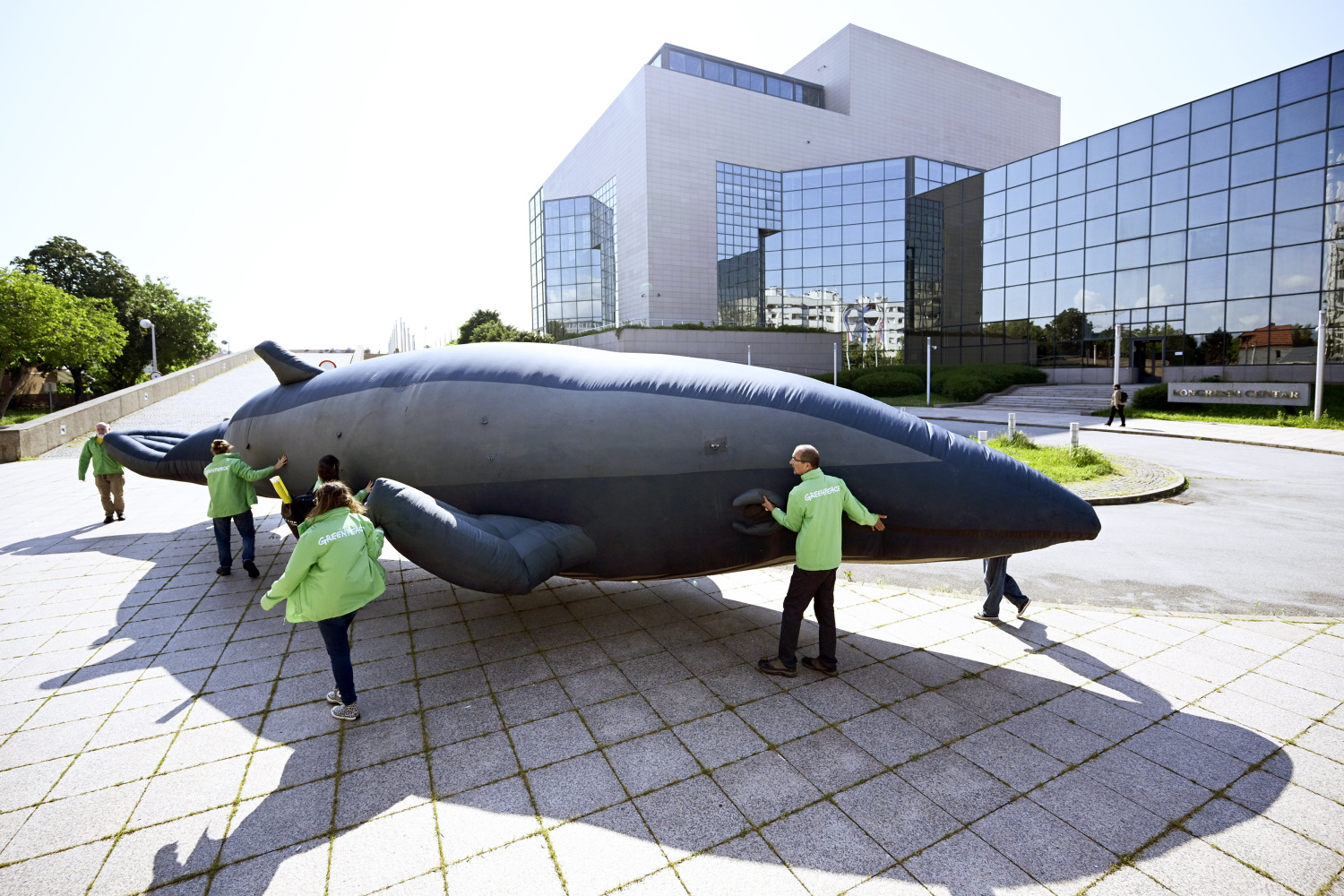Aktivisti Greenpeacea postavili su u utorak ispred Nacionalne i sveučilišne knjižnice 16 metara dug rekvizit kita kako bi apelirali na hrvatsku Vladu da među svoje prioritete hitno uvrsti ratifikaciju globalnog Sporazuma o svjetskim morima (BBNJ), potpisanog još 2023. godine.