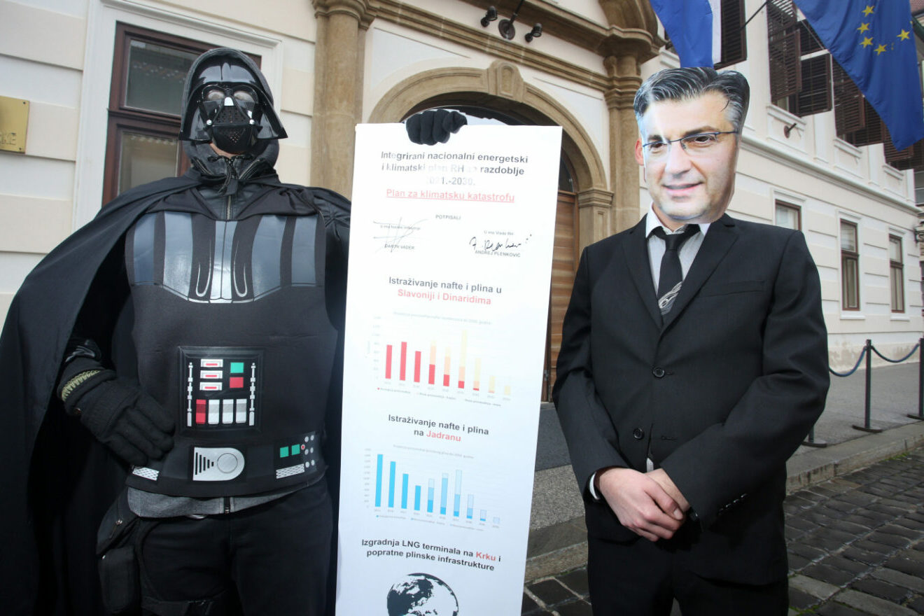 Tada su aktivisti podsjetili da je Sud EU donio presudu kojom Hrvatska mora platiti kaznu od milijun eura paušalno plus 6500 eura po danu dok se ne obavi sanacija, zbog 150.000 tona troske koja se više od 15 godina nepropisno odlaže u mjestu Biljane Donje.