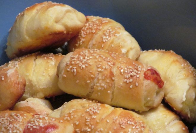 Svaki oval premažite s malo vode, čvrsto zarolajte i redajte u posudu za pečenje. Kad je napunite, prekrijte peciva i ostavite ih 15-20 minuta da se stisnu.