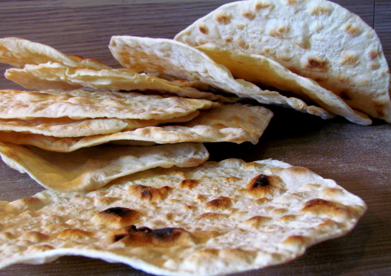 Od sastojaka zamijesite tvrđe tijesto te ga ostavite da odstoji. Potom ga podijelite na tri dijela i od njih oblikujte kuglice. Na pobrašnjenoj podlozi svaku kuglicu razvaljajte što tanje u oblik kruga te pecite u posudi za pečenje koju ste prethodno također posuli brašnom.