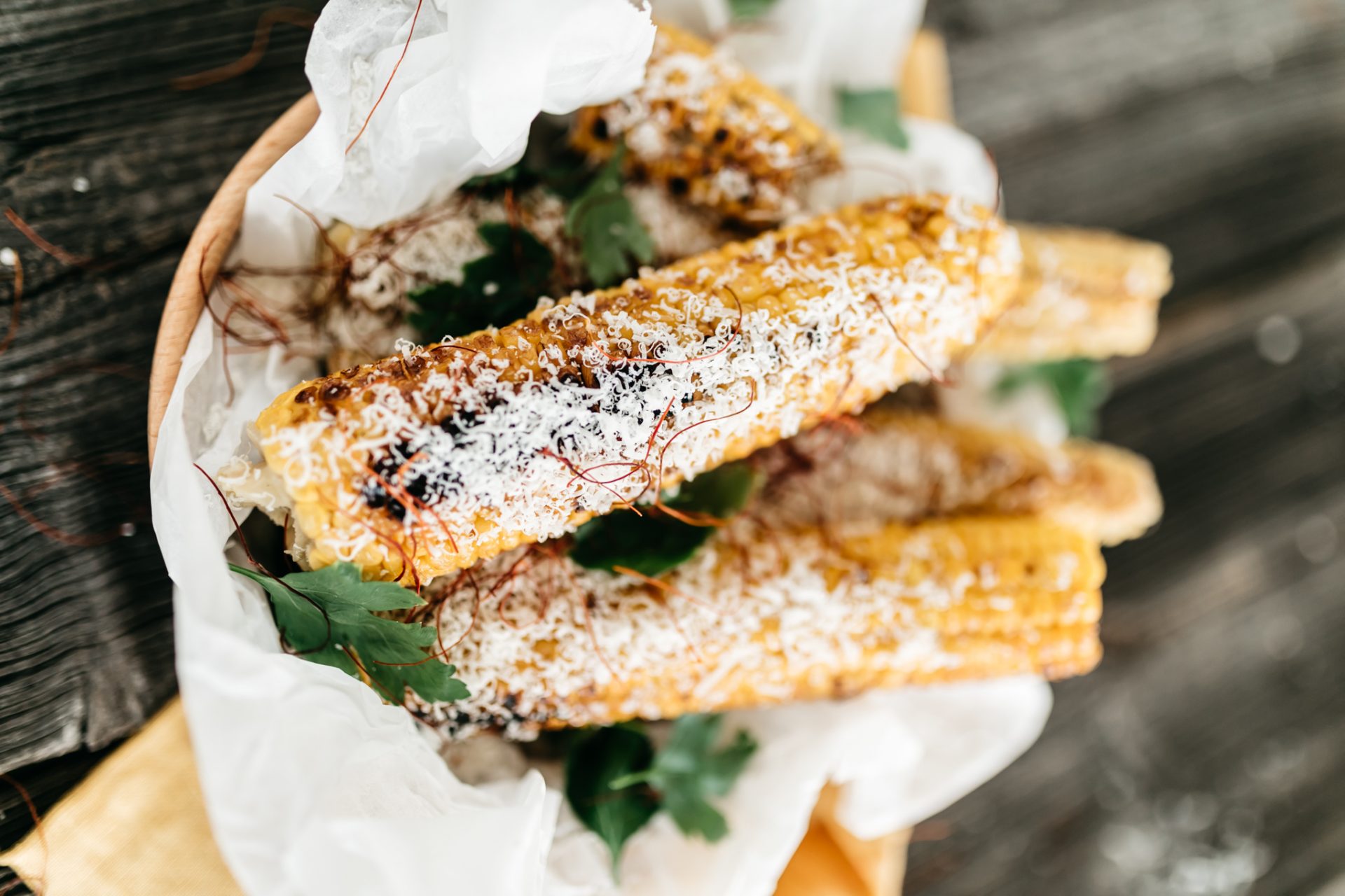 -Grilani kukuruz ostavite da se kratko prohladi i pospite s ribanim sirom i začinima po izboru