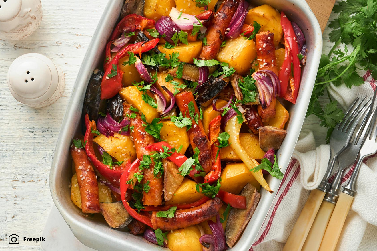 Pečeno povrće s krumpirom jednostavno je, ali vrlo ukusno jelo. Krumpir i razno povrće peku se u pećnici dok ne postanu mekani iznutra i hrskavi izvana. Ovo jelo je zdravo, zasitno i odlično kao prilog ili lagani glavni obrok.