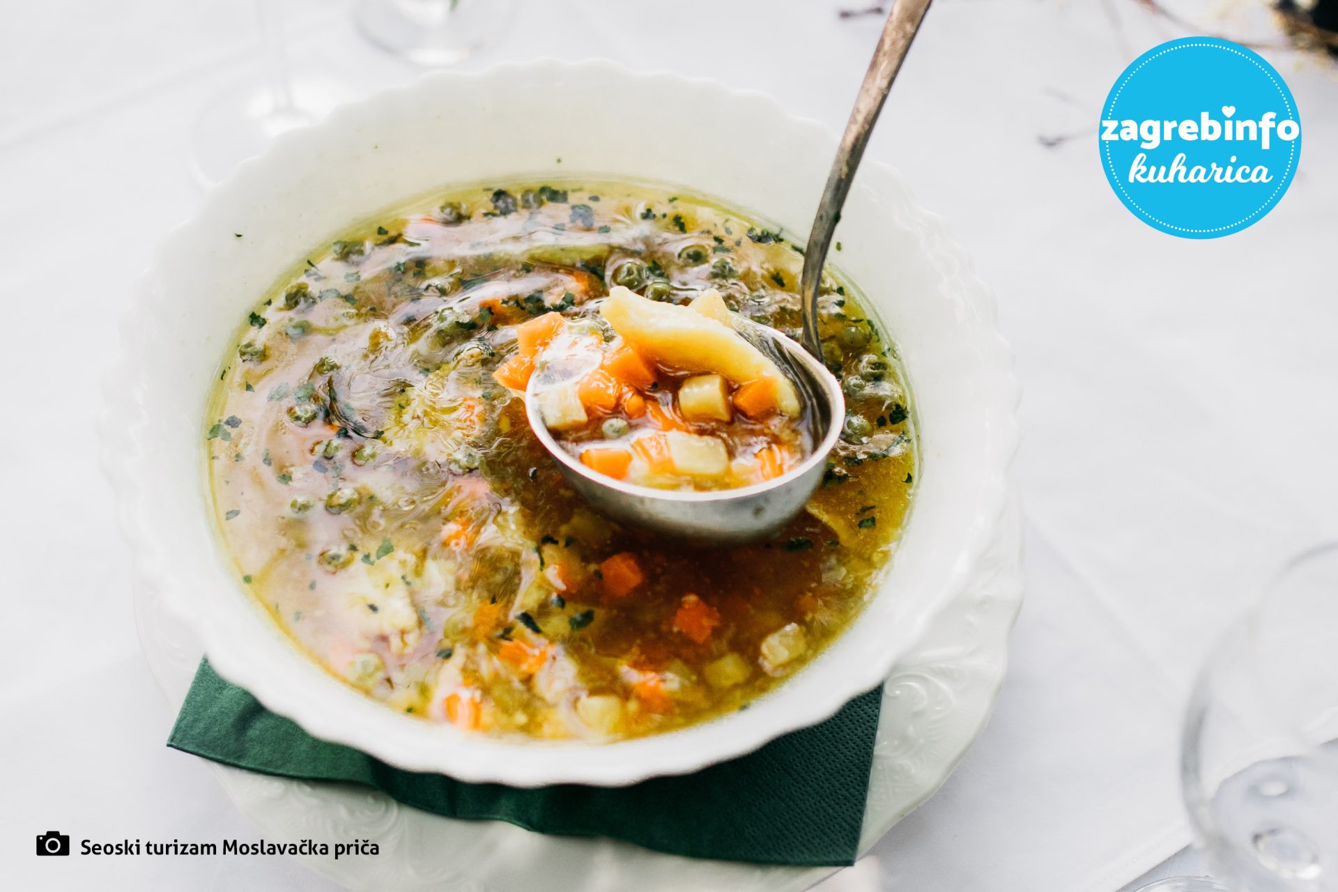 Narežite luk i korjenasto povrće na kockice i ispržite ih na ulju. Dodajte pileći hrbat narezan na kockice, ispržite ga i zalijte vodom. Kuhajte dok meso ne omekša te začinite po volji. Od jaja, brašna i ulja napravite smjesu na noklice te ih malom žličicom dodajte u juhu koja vrije.