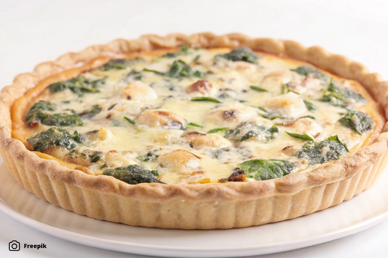 Quiche je francusko jelo koje se sastoji od prhkog tijesta ispunjenog smjesom od jaja, vrhnja i raznih sastojaka poput šunke, sira ili povrća. Obično se peče u okruglom obliku i poslužuje toplo ili hladno, često kao doručak, ručak ili lagani obrok. Njegova kremasta tekstura i bogat okus čine ga popularnim izborom u mnogim kuhinjama širom svijeta.