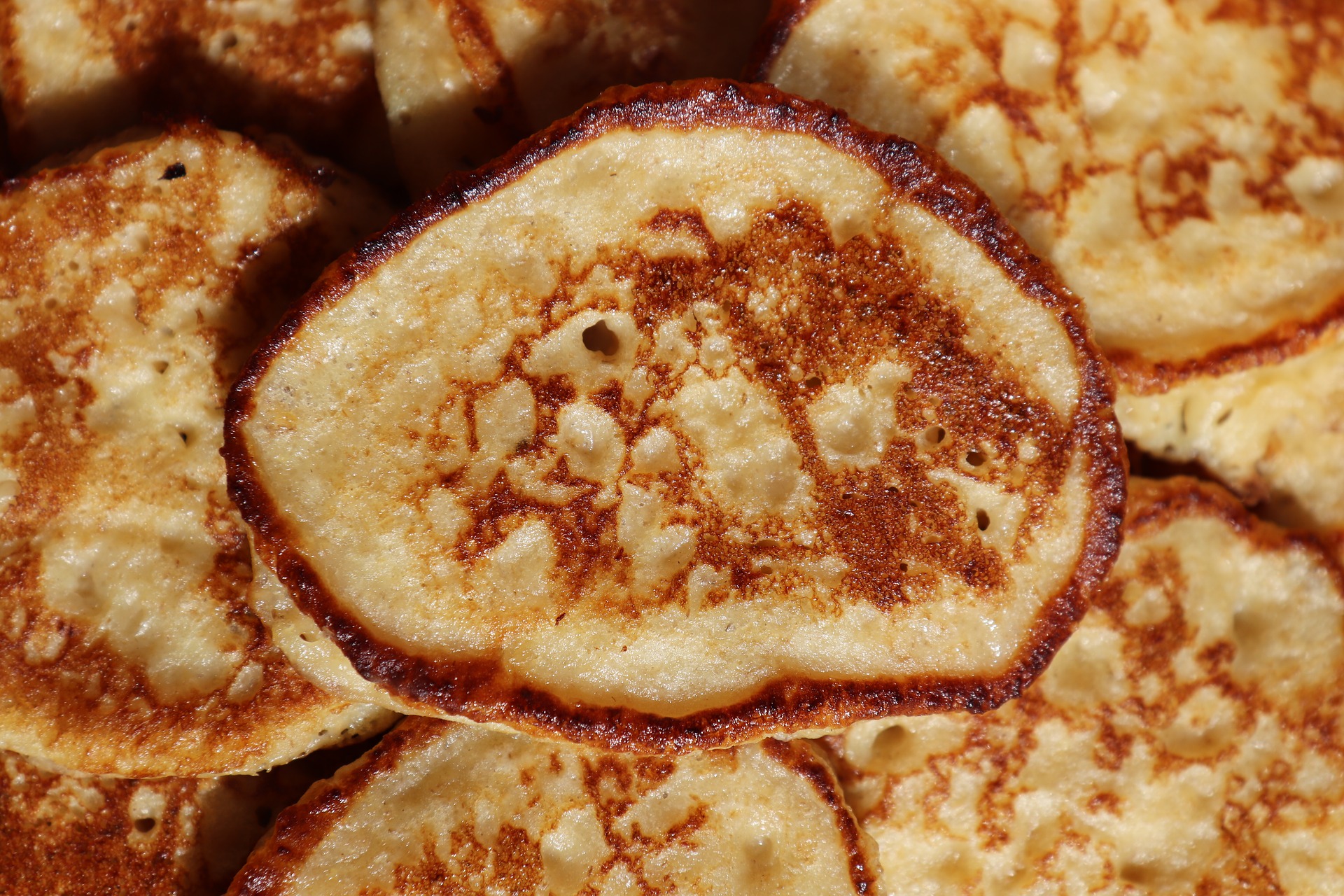 Tavu zagrijte na najjačoj temperaturi, zatim smanjite i pecite na srednjoj temperaturi. Prije nego što palačinke stavite peći, tavu prebrišite nauljenim papirom. Kad izlijete smjesu, oblikujte je žlicom da dobijete lijep okrugli oblik. Kad se pojave mjehurići na gornjoj strani, okrenite palačinku. Pečene palačinke složite na tanjur i premažite namazom po želji.