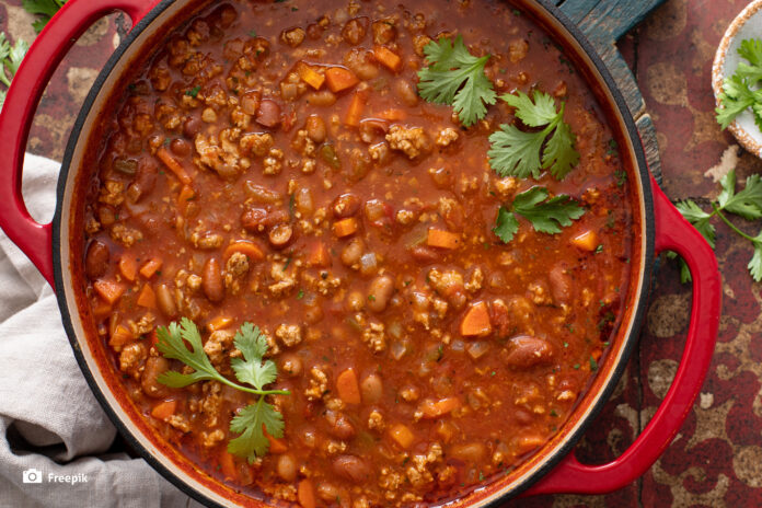 limenku, i umak od rajčice. Pustite da proključa i umiješajte čili prah. Smanjite temperaturu
