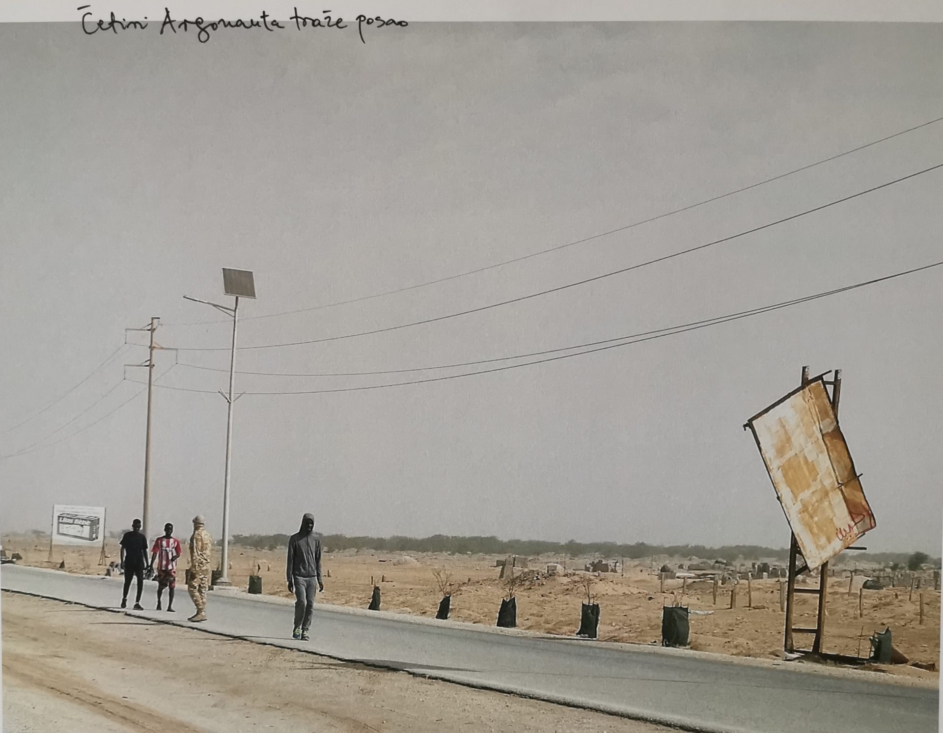 Fotografija Četiri Argonauta traže posao snimljena je na ulicama glavnog grada Nouakchotta u Mauritaniji koja govori o načinu života tamošnjeg stanovništva koji su inspirirali umjetnicu i vrlo često ju podsjećali na likove iz grčke mitologije. Jednako tako umjetnica prikazuje fascinaciju geografskim razmjerima i meteorološkim razlikama između Mauritanije i Hrvatske koju pokušava sažeti u samo jednoj rečenici.