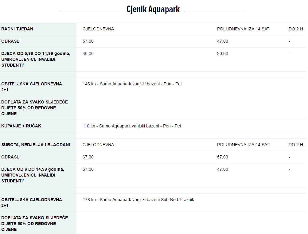 * ulaz kućnim ljubimcima na područje kupališta striktno je zabranjen, a za detaljnije ponude kliknite OVDJE