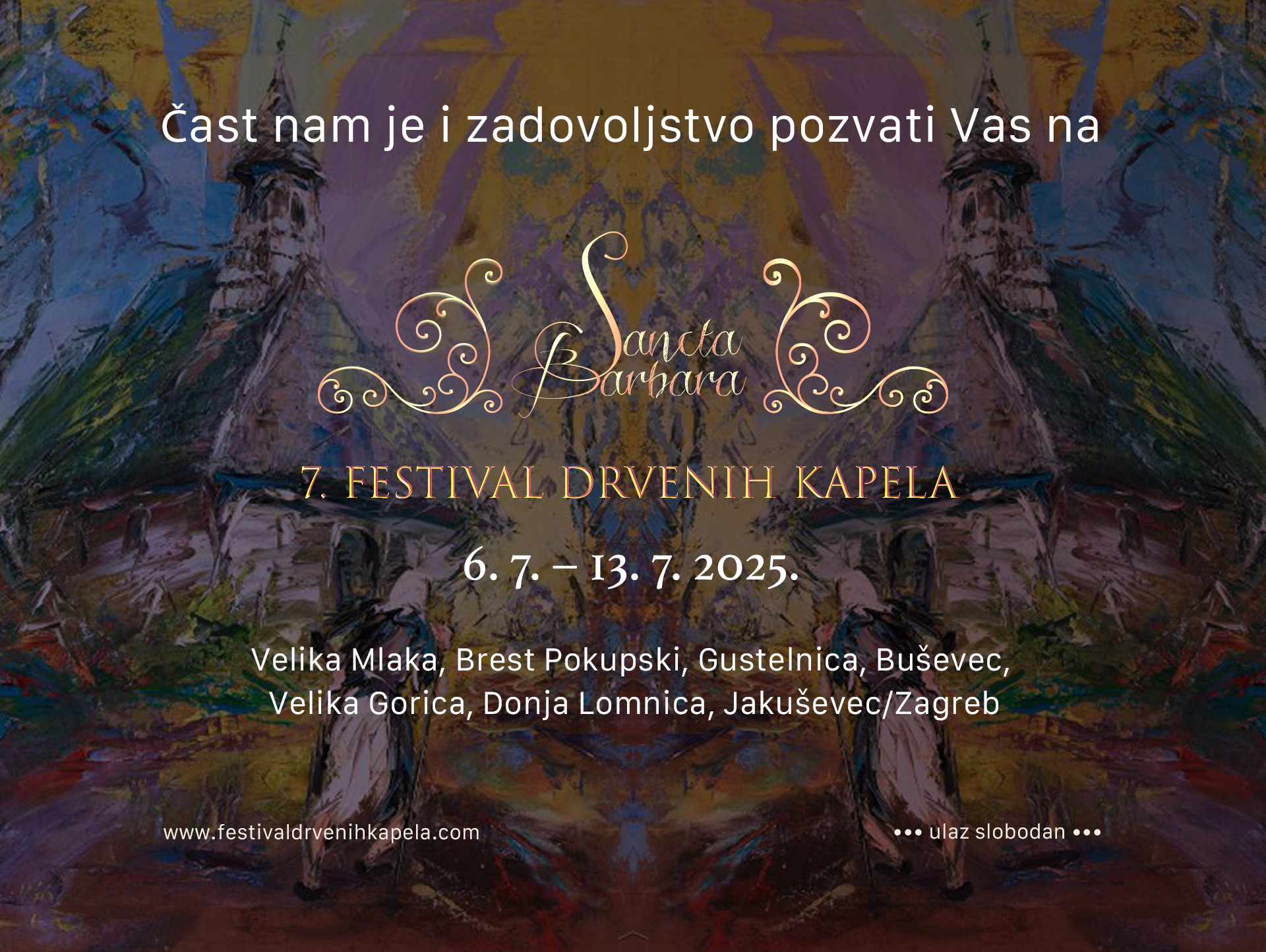 Sedmi Festival drvenih kapela Sancta Barbara održat će se od 6. do 13. srpnja u 20 sati, u drvenim kapelama u Velikoj Mlaki, Brestu Pokupskom, Gustelnici, Buševcu, Velikoj Gorici i Jakuševcu u Zagrebu, dok će se popularno ladanje pred kurijama Zagrebačke županije održati ispred kurije Modić-Bedeković u Donjoj Lomnici.