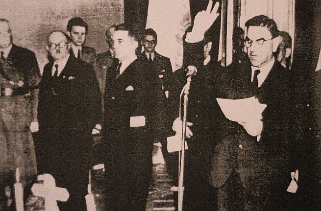 Maček je, pak, izjavio: “Hrvatski narode! Pukovnik Slavko Kvaternik, vođa nacionalističkog pokreta u zemlji, proglasio je danas slobodnu i nezavisnu hrvatsku državu na cjelokupnom historijskom i geografskom području Hrvatske, te preuzeo vlast. Pozivam sav hrvatski narod, da se novoj vlasti pokorava. Pozivam sve pristaše HSS, koji su na upravnim položajima, sve kotarske odbornike, općinske načelnike i odbornike itd, da iskreno surađuju s novom narodnom vladom”.