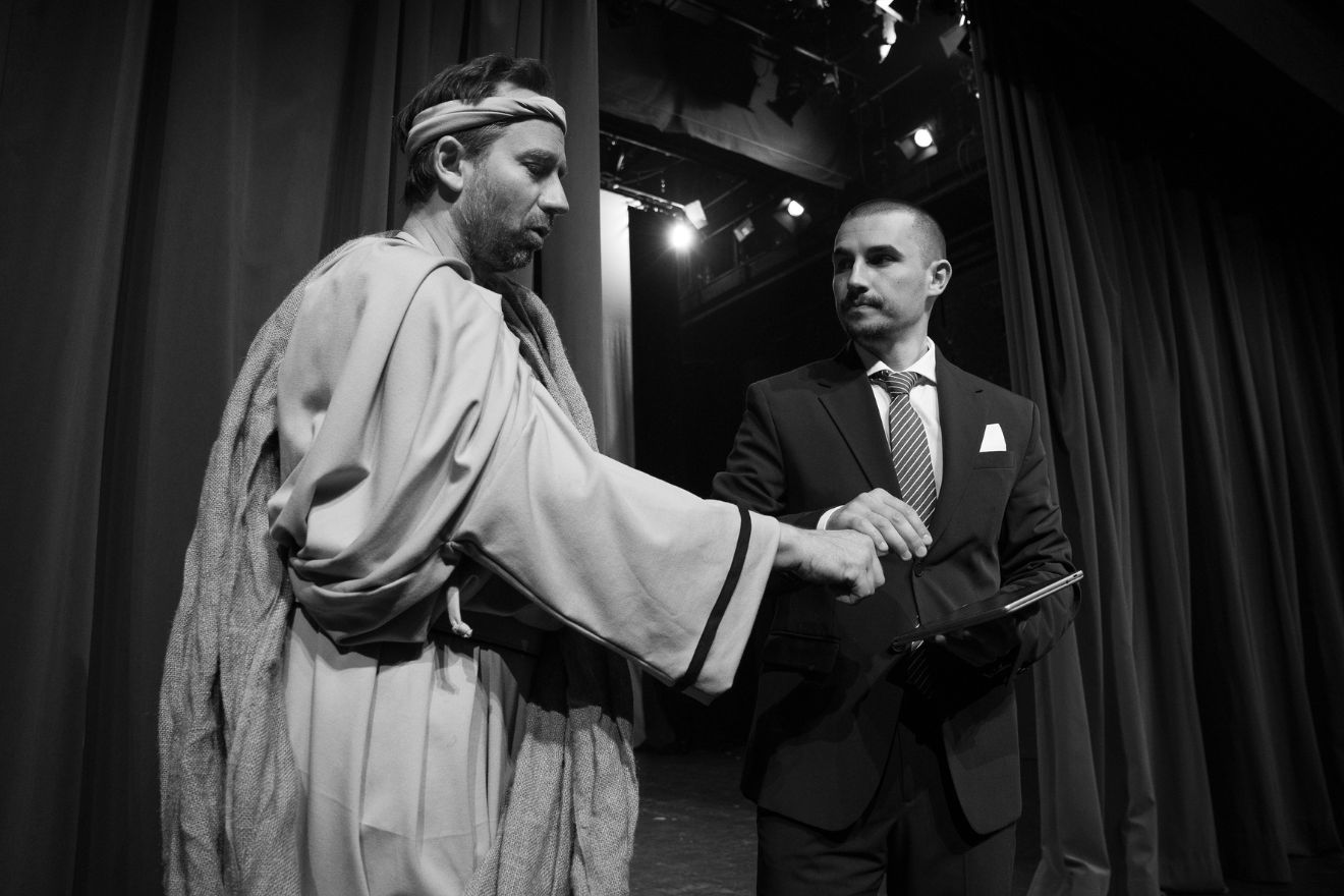 Prelazeći vješto iz jednog u drugi žanr, iz svijeta tragedije u svijet komedije, ova će predstava omogućiti usporedbu ta dva kazališna i životna principa. Istražit će se tako suštinska razlika između tragičkog i komičkog tipa poimanja svijeta i glumačkog predstavljanja istog.