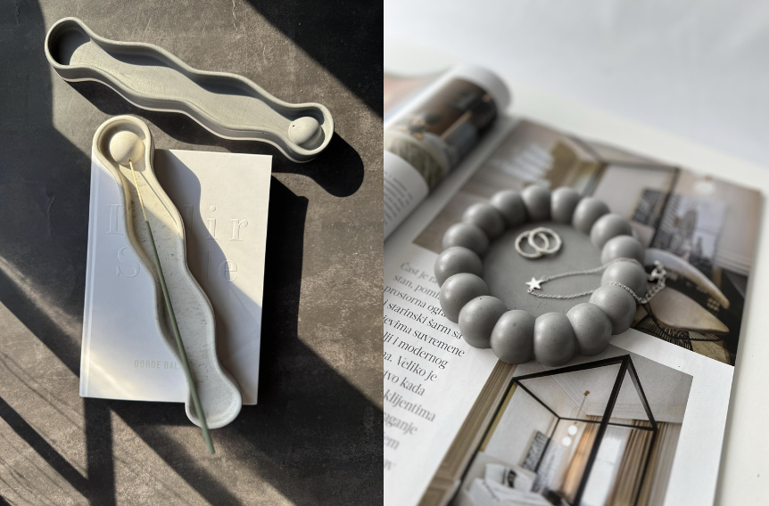 Mali obiteljski obrt mladog bračnog para, Daniela i Sunčice, bavi se izradom održivih, ručno rađenih funkcionalno-dekorativnih proizvoda za uređenje doma od ECO betona odnosno Jesmonite poput podmetača, pladnjeva, teglica, posudica i mnogih drugih dodataka. Također se bave i izradom unikatnog namještaja po narudžbi od raznih vrsta autohtonog drva, a daske i pladnjevi od oraha su savršen dodatak za svaku kuhinju. Najnoviji dodatak asortimanu – mirisne svijeće od 100% sojinog voska izrađene su u unikatnim posudicama od ECO betona. Svi proizvodi su 100% unikati i ručno su rađeni.