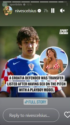 Nives Celzijus na Instgram Storyju podijelila je članak britanskog sportskog magazina Sports Bible koji se raspisao njenoj vezi s bivšim suprugom, nogometašem, Dinom Drpićem.