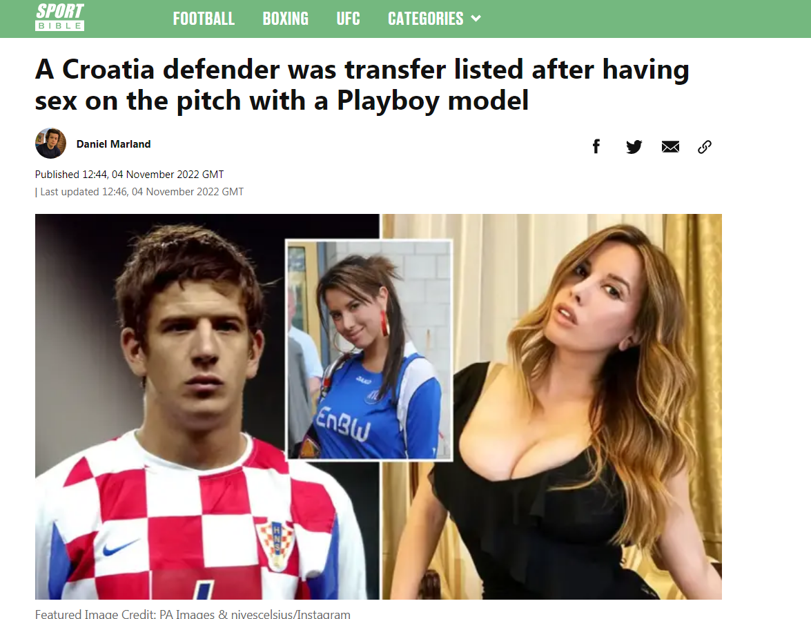 Pod naslovom Hrvatski branič završio na listi za transfer nakon sek*a s Playboyevim modelom, prikazana je kronika događa koji su uslijedili nakon što je Nives priznala da su vodilli ljubav na maksimirskog travnjaku. Naime, Dinamo je Drpića nakon toga stavio na listu za transfer.