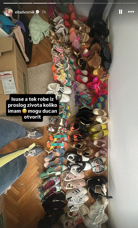 Tako je Ella snimila desetke svojih štikli i tenisica, a u priči na Instagramu je otkrila da se rješava dijela svoje kolekcije. “Morat ću uskoro riješiti dio ovog voznog parka”, napisala je u priči.