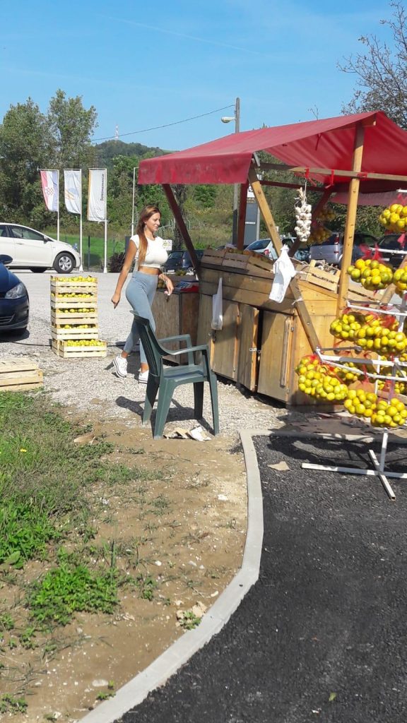 “Radim za OPG i gazde znaju da se ljudi žele fotografirati. To nam je simpatično i dobro se nasmijemo”, kaže Kristina. Posao s voćem i povrćem doslovno cvate te joj svaki dan dostavljaju svježe iz Opuzena. Kroz dan plane oko 300 kilograma mandarina, a na veću količinu kupci dobivaju popust.