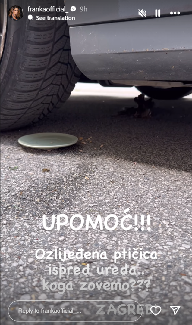 “Upomoć! Ozlijeđena ptičica ispred ureda, koga zovemo?”, upitala je.
