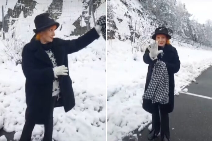 ‘Malo širite ovako… Pa malo s ove strane prođite, ovako… Može, sve to snimajte… Prvi snijeg, nije dobar tonalitet’, rekla je Josipa Lisac u videu snimljenom na cesti.