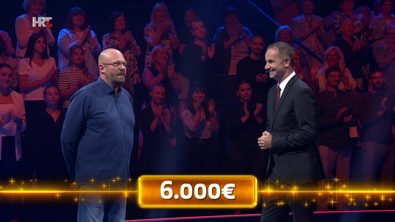 U prvom krugu osvojio je 500 eura. Odlučio se zatim za dvoboj s Mladenom, Krešom, Svenom i Moranom, u kojem je igrao za 6000 eura, dok su lovci imali 45 sekundi na raspolaganju. Nažalost, izbor se pokazao prezahtjevnim – lovci su znali sve odgovore i na kraju su im ostale 22 sekunde.
