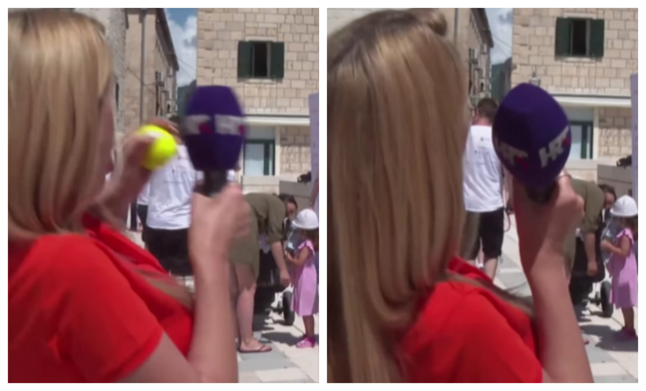 Poznata sportska novinarka HRT-a Mirta Šurjak, prilikom snimanja priloga o ženskom teniskom turniru koji se trenutno održava u Makarskoj, doživjela je nesvakidašnju situaciju. Naime, usred intervju netko ju je pogodio teniskom lopticom u glavu. Prvo ju je to šokiralo i počela je vikati, a onda se počela smijati.