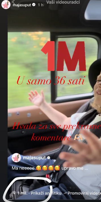 O snimci se u petak ponovno oglasila Maja Šuput. “Jedan milijun u samo 36 sati. Hvala za sve prekrasne komentare”, napisala je pjevačica uz fotografiju iz videa koju je objavila na svom Instagram stroyju.