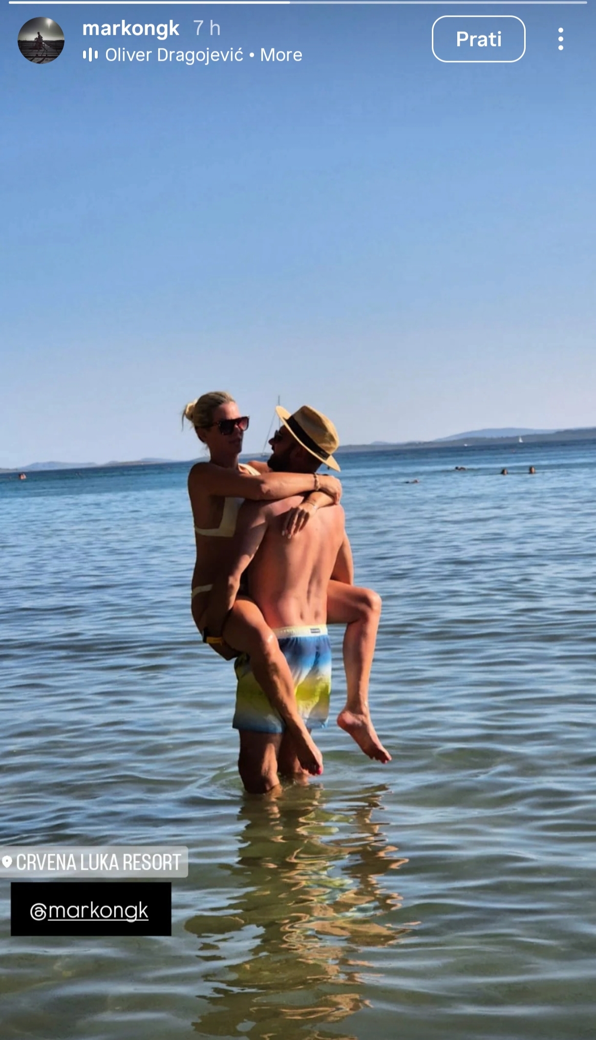 Tako je Beograđanin putem storyja podijelio fotografiju iz mora gdje u naručju strastveno drži osam godina stariju Zadranku, a u pozadini im svira “More” Olivera Dragojevića.