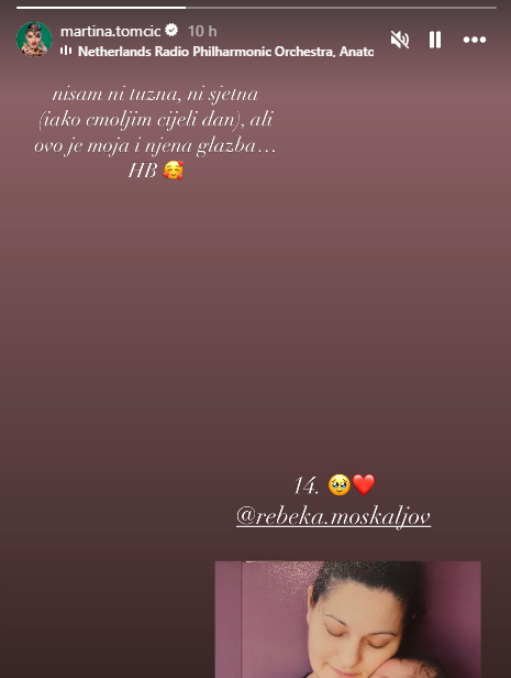 U posljednjoj objavi na svom Instagram storyju, Martina je objavila emotivnu fotografiju na kojoj svoju kći drži u naručju dok je bila beba. “Nisam ni tužna ni sjetna (iako cmoljim cijeli dan), ali ovo je moja i njena glazba. Sretan rođendan”, napisala je uz fotografiju.