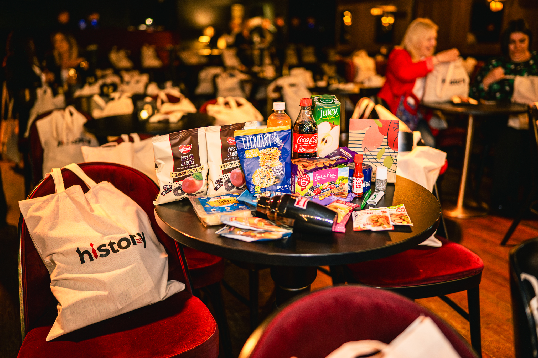 Te večeri goste smo razveselili i lijepim i zanimljivim poklonima. Pripremili smo im održive dupkom pune platnene vrećice Historyja, a za sadržaj vrećica pobrinuli su se naši partneri: ANAMARIA, Barcaffe, BOBI, Cedevita, ELEPHANT, Juicy, Kezele, Konzum, Kotanyi, Mogyi, Mondelēz, OPG Hažić, Pevex, Sana delikatese, Teekanne, Volim Ljuto, Yves Rocher.